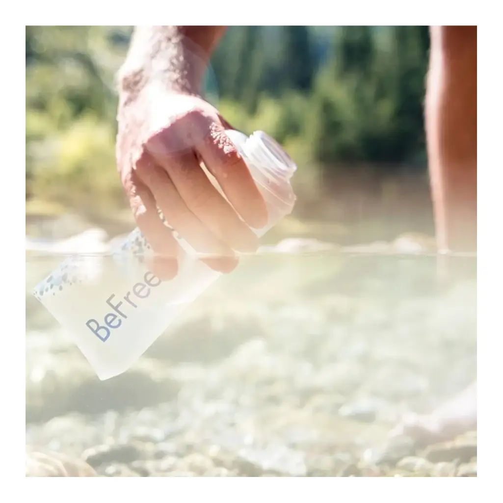 Die Katadyn BeFree 600ml ist eine zusammenklappbare Trinkflasche mit Filter, die wenig Platz einnimmt und leicht zu transportieren ist. Diese Trinkflasche wird seit Jahren von Militärangehörigen auf der ganzen Welt verwendet, um Wasser zu filtern und sie mit Trinkwasser zu versorgen, das frei von Bakterien und Protozoen ist.
