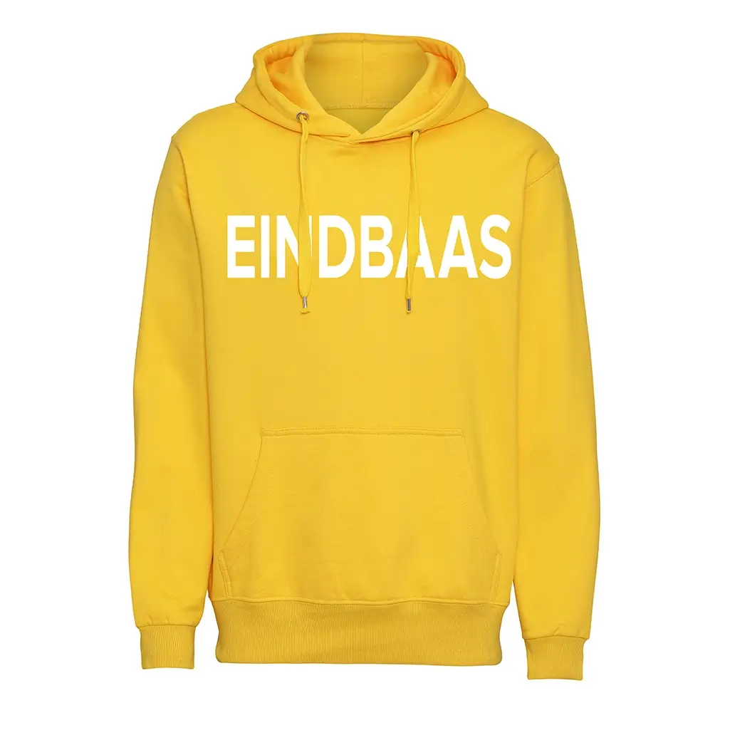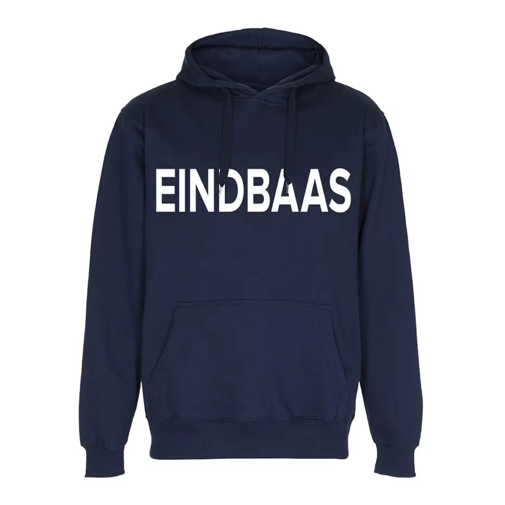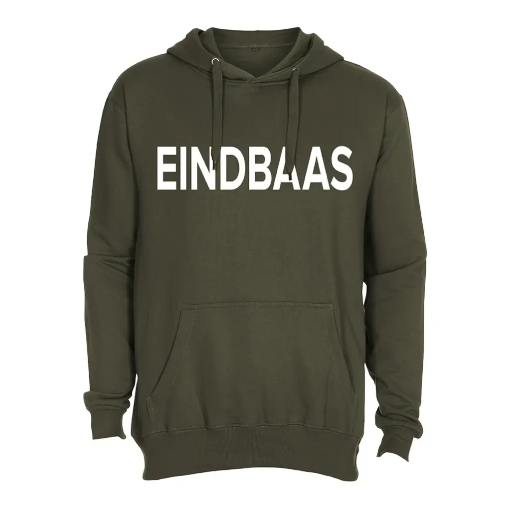Je hebt eindbazen en je hebt gummienekken. Jij valt overduidelijk in de eerste categorie, baas boven baas! Deze mooie, kwalitatieve sweater met capuchon geeft je de bewegingsvrijheid die je nodig hebt. De hoodie Eindbaas staat altijd goed in combinatie met jeans en sneakers. Daarnaast is deze casual vrijetijdskleding is ook uitermate geschikt voor je work-out. Verder heeft de trui een subtiel logo op de mouw en komt uit de eigen collectie van de Veteranenshop. De hoodie Eindbaas is beschikbaar in de kleuren legergroen, lichtblauw, marineblauw, grijs, roze en geel.