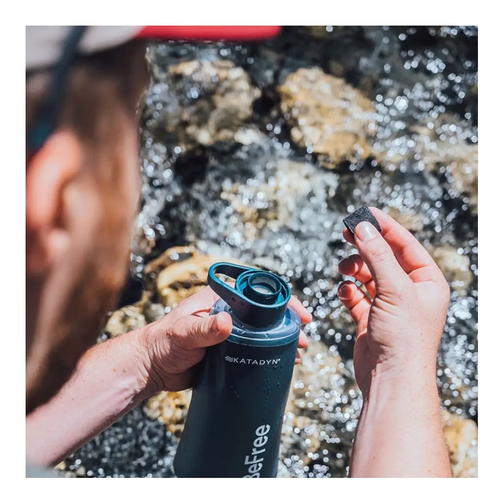De Katadyn BeFree 500ml is een opvouwbare drinkfles met filter die weinig plek inneemt en makkelijk mee te nemen is. Deze drinkfles wordt wereldwijd al jaren door militairen gebruikt om water te filteren en hen te voorzien van drinkwater dat vrij is van bacteriën en protozoën. De actieve koolstof filter zorgt voor een uitstekende smaak en het verminderen van geuren, en een 0,1-micron holvezelfilter voor microbiologische veiligheid, garanderen deze ultralichte filters schoon en veilig water uit elke bron.